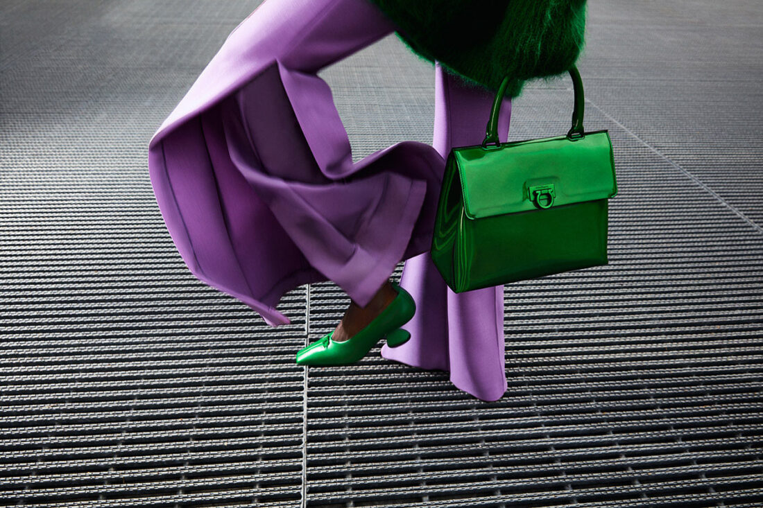 Con esta colección “Future Positive” otoño-invierno 2021, Salvatore Ferragamo va hacia adelante para dar forma a un nuevo hoy. Inspirado por la libertad conceptual ilimitada de la ciencia ficción y el legado de innovación técnica de la casa proyectada hacia el futuro para crear una visión alternativa del presente. Impulsada por el optimismo y la esperanza, esta es una colección brillante y juvenil que disrumpe y reinterpreta uniformes del siglo XXI (de negocios, militares, nocturnos, deportivos), descartando todo lo que es anticuado. Esta colección está impulsada por la sensibilidad por la salud de nuestro medio ambiente.