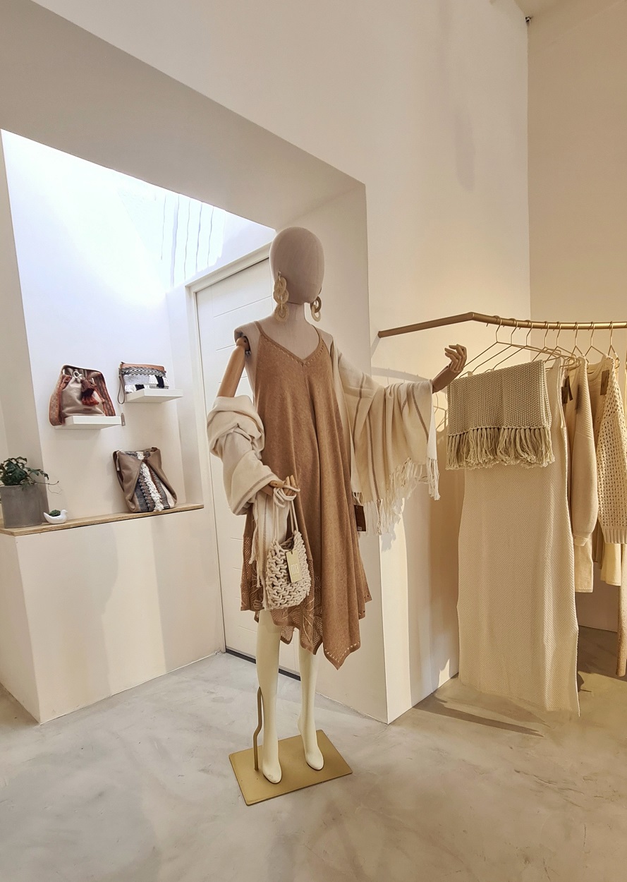 La tienda física se ubica en San Isidro y cuenta con toda la variedad de creaciones de la marca, desde accesorios, abrigos, cardigans, sweaters, vestidos entre otras prendas trabajadas con mezclas de baby alpaca, seda y algodón orgánico pima y nativo.