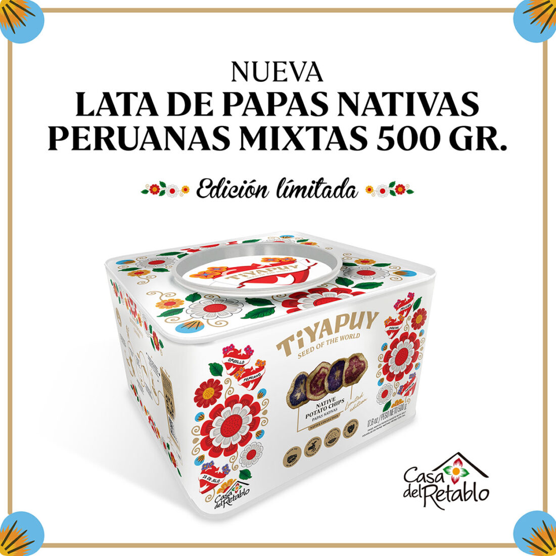 Esta colaboración busca mostrar el talento y el orgullo peruano, inspirada en un retablo de Ayacucho que en su interior trae una mezcla de papas fritas mixtas nativas de Tiyapuy.