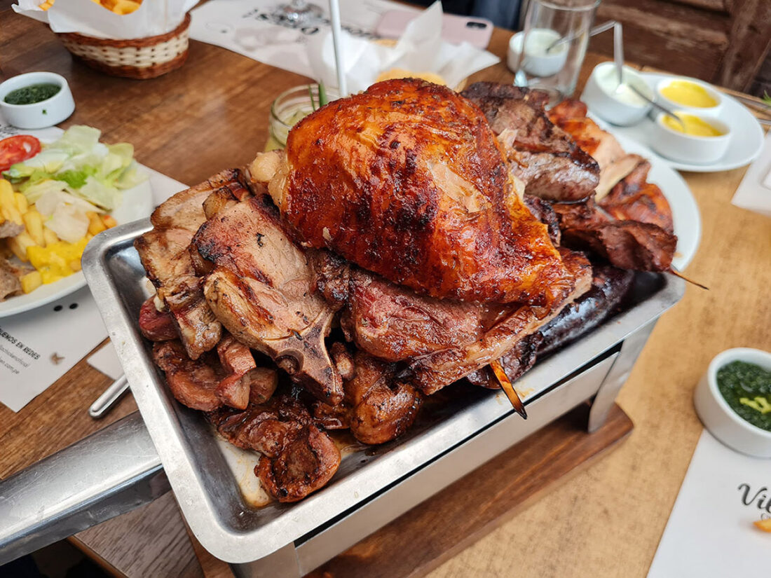 Para iniciar la experiencia está el Roll de pollo a la leña, relleno con un aderezo especial junto a trozos de pollo a la brasa, todo dentro de una masa filo que cruje elegantemente que incita a no dejar de probar uno tras otro con esa salsita de ají Villa especial.
