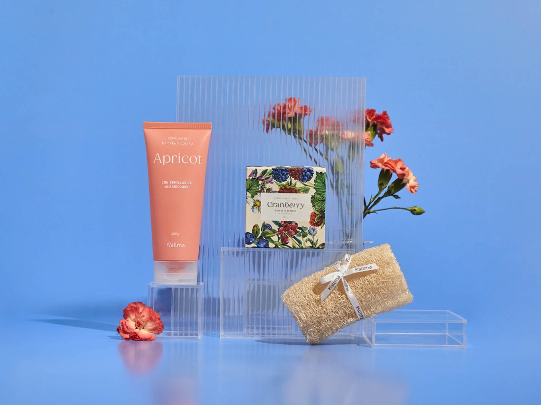 Puedes elegir como regalo los packs con jabones, esponjas de ducha y exfoliantes de K’allma los cuales generarán un espacio de cuidado de la piel y cuerpo dejándola suave al tacto por medio de una experiencia sensorial.