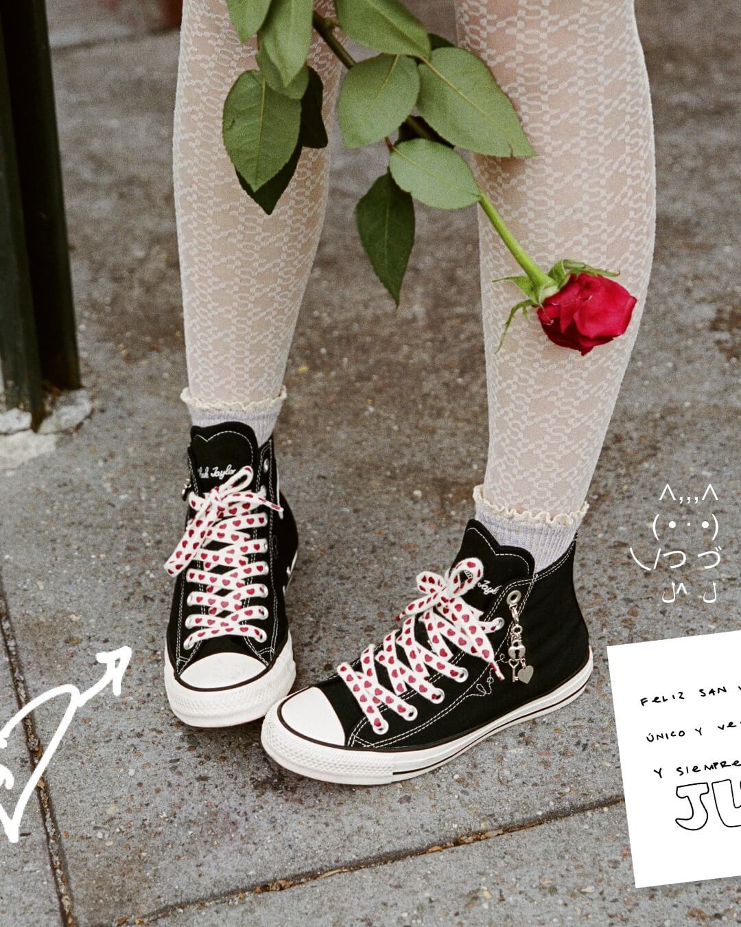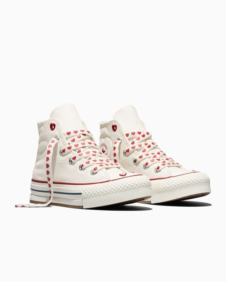 Aunque el ADN clásico de Chuck sigue siendo el núcleo de la gama, la colección añade una dosis extra de encanto con detalles en forma de corazón, divertidos adornos para los zapatos, costuras distintivas y estampados atrevidos y alegres, que aportan toques ingeniosos diseñados para despertar la alegría y permitir a quienes los llevan expresar su propia versión del amor.