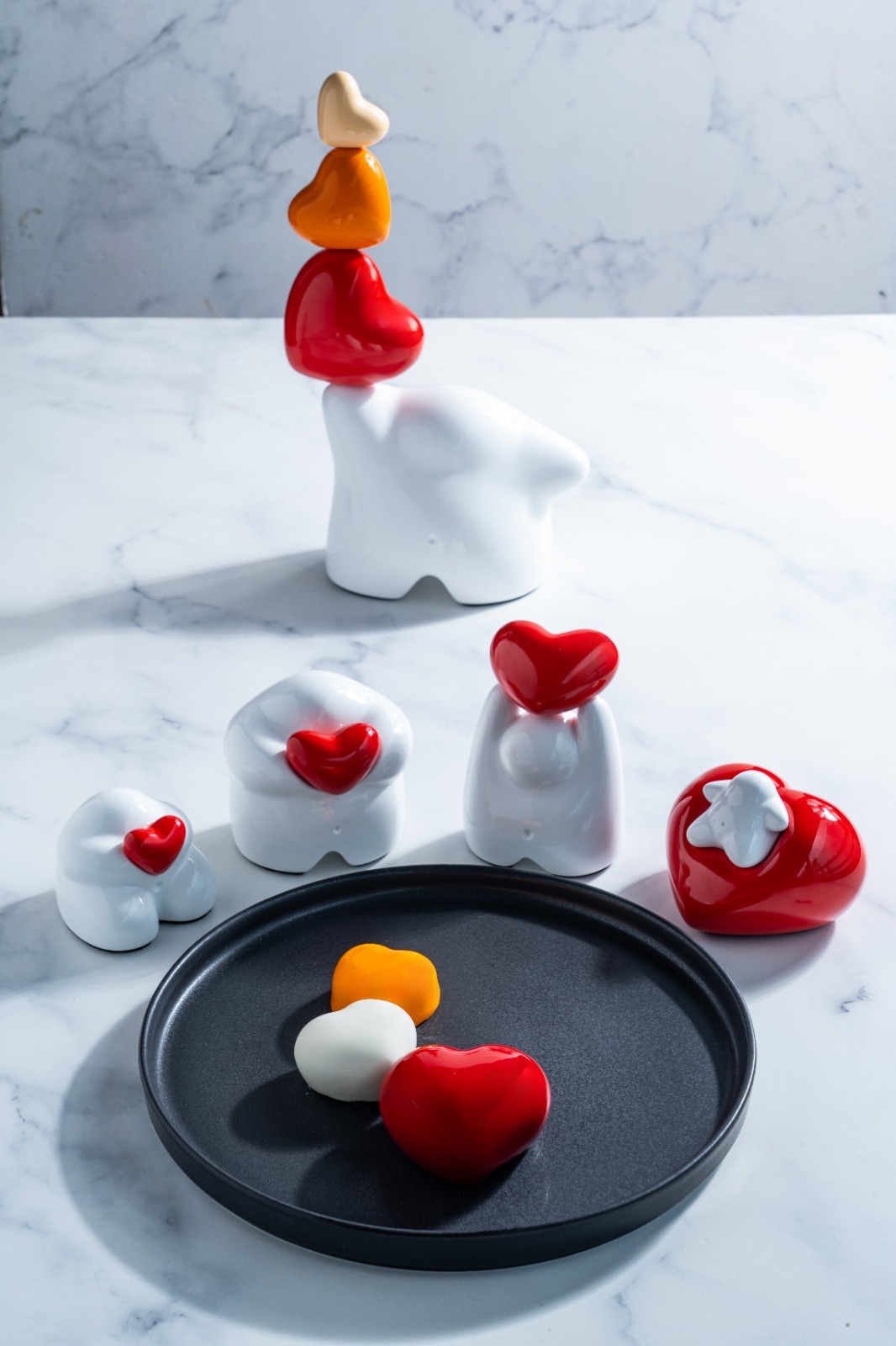 El postre, llamado “Corazones de Marcelo”, es una interpretación dulce de su obra más emblemática: una trilogía de corazones comestibles, cada uno con un perfil de sabor único —matcha-vainilla, chocolúcuma y chocogianduia—, que convierte el final de la comida en una verdadera experiencia artística y en un regalo perfecto para estas fechas.